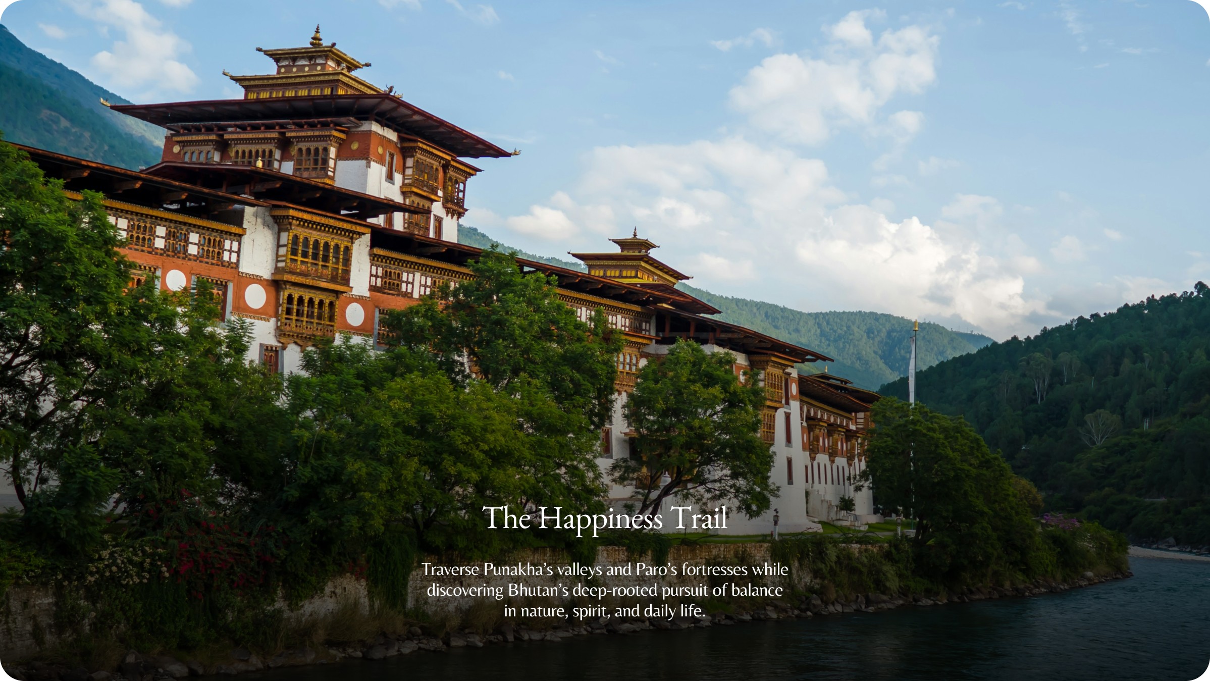 Prayer flags ripple across mountain passes, dzongs rise like fortresses of peace, and Gross National Happiness guides the rhythm of daily life.
